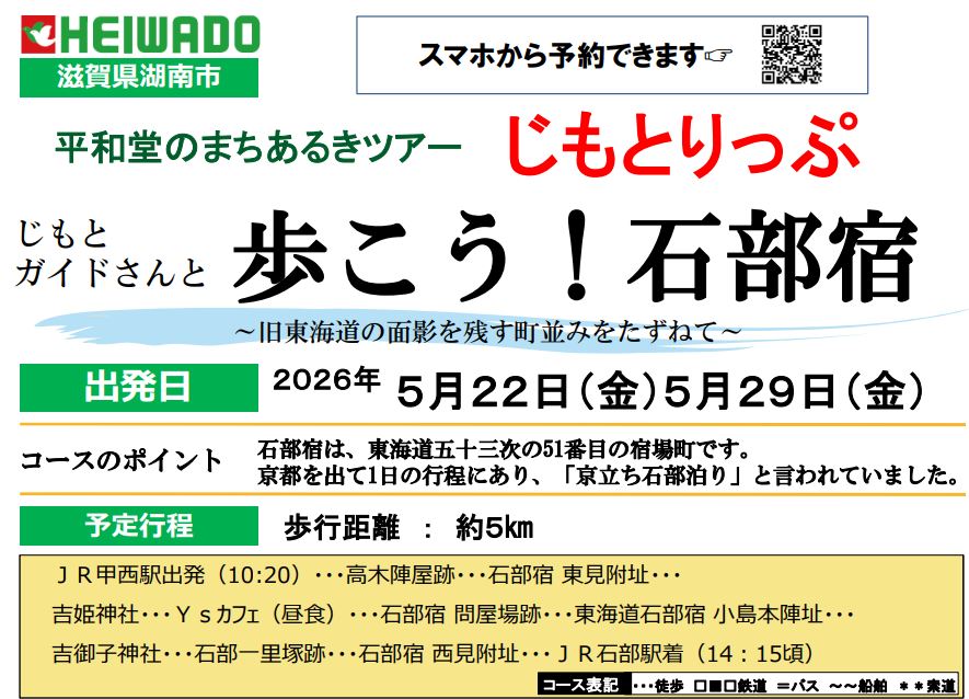 平和堂のツアー 平和堂のまちあるきツアー じもとりっぷ「歩こう!石部宿」発売中!