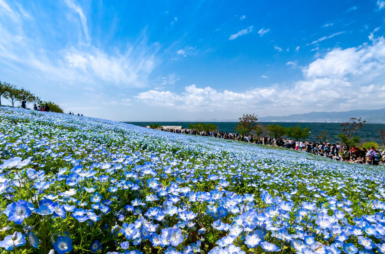 ・「ネモフィラ祭り」は、大阪湾を望む最高のロケーションに広がる約100万株のネモフィラをお楽しみいただけます。